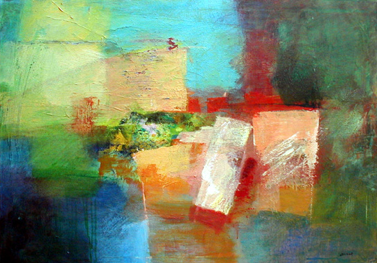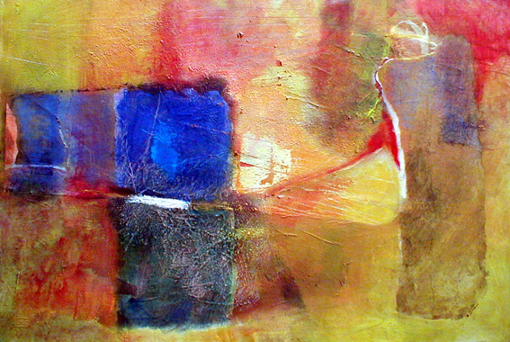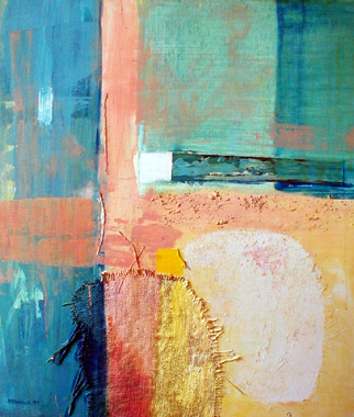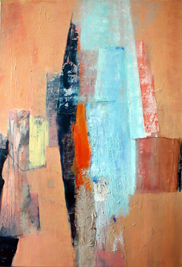 " A la mani?re de l’oiseau dans le ciel, Nicole Doneux ponctue son parcours en peinture d’une multitude de rep?res sensitifs. Alors que les nombreuses ann?es de pratique l’ont men?e au c?ur de l’abstraction, elle d?voile pour nous des visions inconnues bien qu’imm?diatement reconnaissables. Terres d’accueil, de pluie et de soleil o? les ocres envahissent les champs, o? les cieux ultramarins d’Arthur (Rimbaud) nous rappellent ? ses ardents entonnoirs. La peinture, ici, devient m?taphore de paysages int?rieurs. Pour impressionner durablement les plaques sensibles de notre imaginaire, le peintre fait dialoguer le lavis ? peine perceptible avec l’argile nourrissante et lourde. Le proc?d? qui ?tonnamment fonctionne, comme une rencontre des impossibles, nous offre sa clameur et nous voil? seuls, menton lev?, sous la vo?te ?toil?e. Pour cette peinture ? la fois chromatique et mati?riste, Nicole Doneux a parfois l’ambition de formats importants. La couleur elle, dans ses rapports complexes et infinis, est toujours audacieuse et ses rugosit?s m?me capables de douceur. " Dominiq Fournal 2002