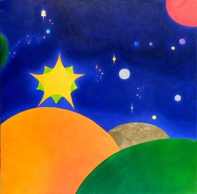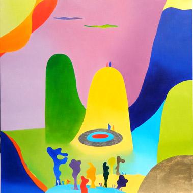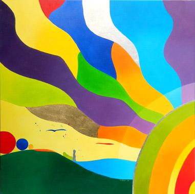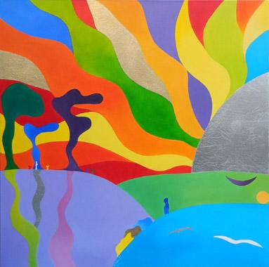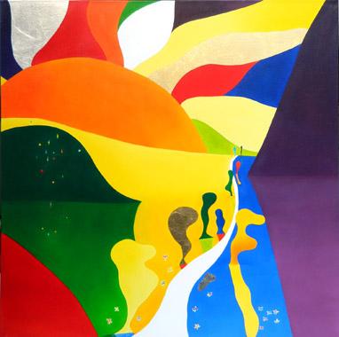 SON OEUVRE : Cette artiste nous d?voile sa vision du monde qui nous entoure et des liens qui unissent les divers ?l?ments qui le composent. Elle nous r?v?le l?harmonie naturelle qui s?en d?gage et nous enjoint ? la respecter et l?admirer. Ses compositions color?es aux formes arrondies traduisent la beaut? et la fluidit? de la vie et l?utilisation des feuilles m?talliques ajoute ? l?aspect sacr? de la nature.