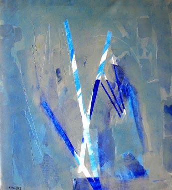 Les supports qu’elle travaille sont vari?s : des toiles, des papiers et cartons maroufl?s, des cartons r?cup?r?s, froiss?s, difficilement ’domptables’ aux ar?tes prononc?es qui se pr?tent ? une d?marche particuli?re.
